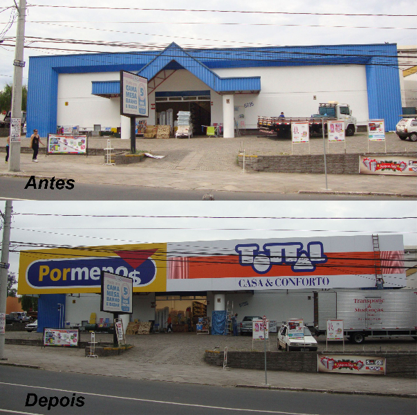 A fachada em lona pode ser confeccionada com impressão digital ou recorte eletrônico. São utilizadas para a identidade visual de diversos estabelecimentos e podem apresentar inúmeros formatos e tamanhos. Alta durabilidade e fácil limpeza.